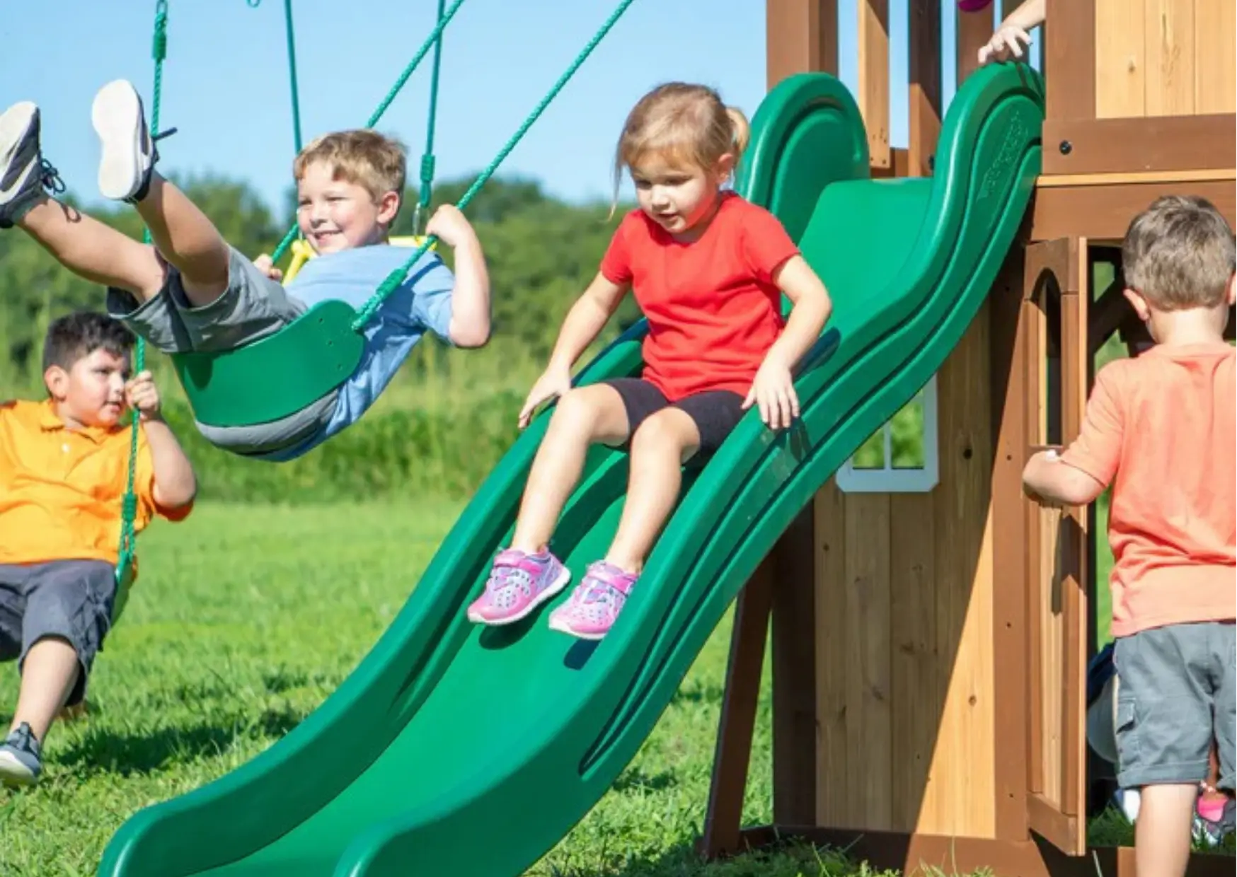 Cada juego está pensado para combinar belleza, resistencia y desarrollo motriz en exteriores.