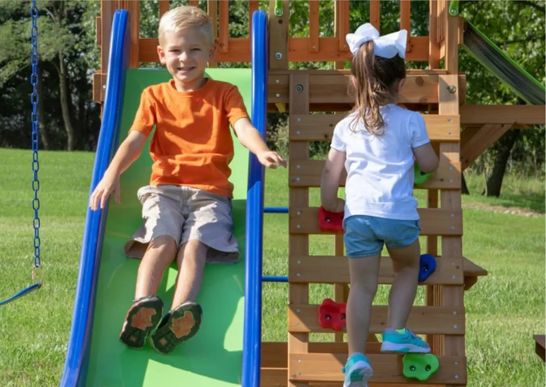 El Seabreeze Adventure 2 incluye casita de madera, columpios, resbaladeros y telescopios para niños. Ideal para juegos al aire libre divertidos y seguros.